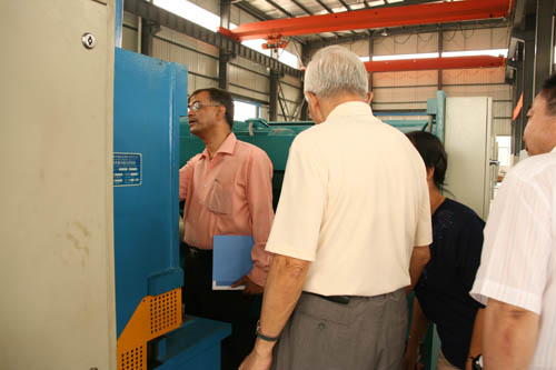 在公司領(lǐng)導的陪同下,PRAKASH先生參觀了公司的成品車間和生產(chǎn)車間,對我公司的生產(chǎn)及研發(fā)能力表示出極大的贊賞。我公司智能化的辦公和流水線系統(tǒng)吸引了PRAKASH先生一行。在操作人員的協(xié)作下,有著二十多年從業(yè)經(jīng)驗的PRAKASH先生對我公司的QC11Y大型機床進行了細致入微的考察,而我公司的機床也以其過硬的品質(zhì)和精密的設(shè)計贏得了PRAKASH先生的好評。